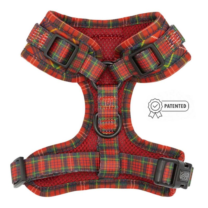 Cozy up by the fire in this flannel adjustable harness. Match with the ones you love in this classy and timeless pattern.