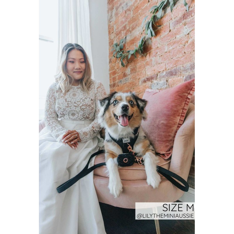 - Pair this harness with our matching leash, collar, bowtie, and waste bag holder!
