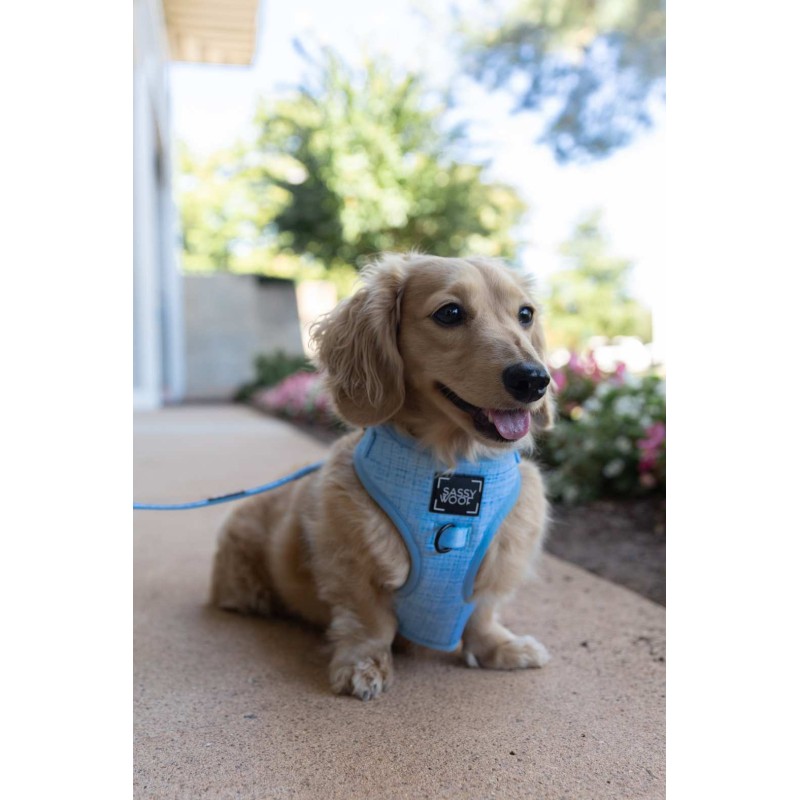 Perfect for every season, this stunning collection will look great on any pup. This vibrant, but subtle blue will have your pup feeling playful and posh. Pair this harness with our EUR~BlumondEUR(TM) bundle or mix and match with our other collections.