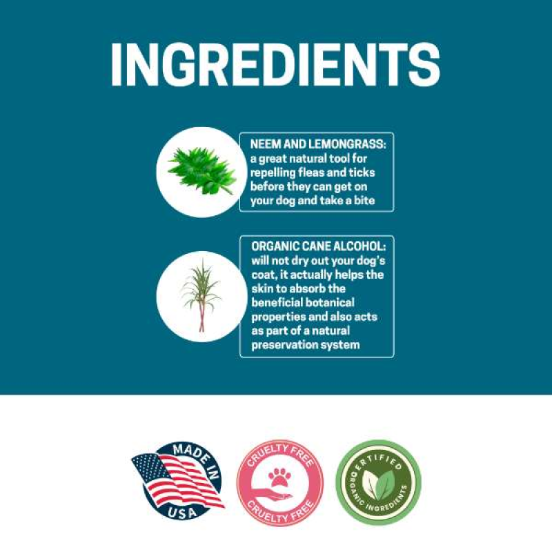 Made with certified organic ingredients, with a pleasant aroma. A quick mist of our pet cologne removes the offending odor without being overpowering. Thank you for shopping at Victorypetsupply.com
