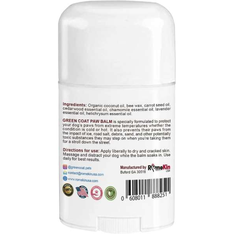 Green Coat Paw Balmspecially formulated to protect your dog's paws from extreme temperatures whether the condition is hot or cold. It also prevents their paws from being hit by ice, road salt, debris, sand, and other potentially toxic substances that they might step on when you take them for a walk down the street. Thank you for shopping at Victorypetsupply.com