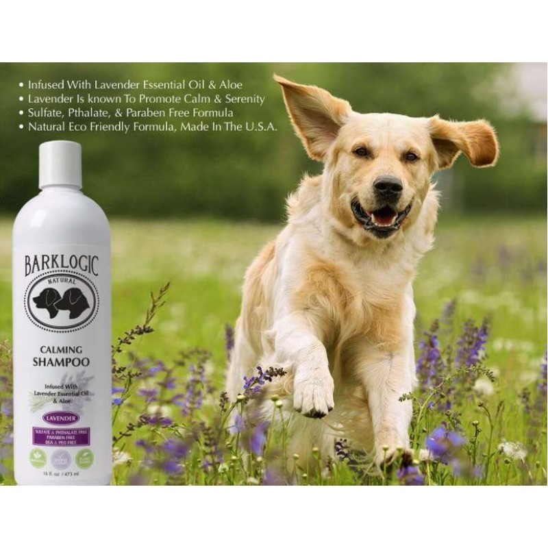 Our BarkLogic Calming Sulfate free dog shampoo is formulated to be gentle on the skin and coat, while providing effective and gentle cleansing. Made with natural plant-based ingredients and infused with nature(TM)s finest botanicals, this shampoo rinses away cleanly leaving no soapy residue behind. Our shampoo is also safe for puppies, and all breeds with sensitive skin for a luxuriously clean, soft, and refreshingly scented coat.