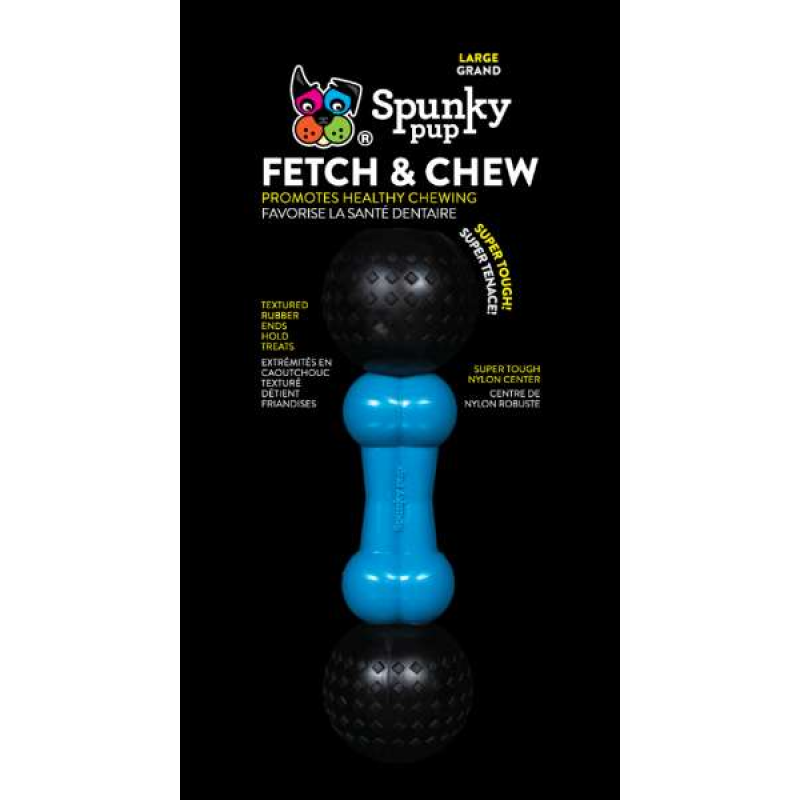 Great for tough chewers, the Fetch & Chew bone from Spunky Pup is made of a super tough nylon center with durable rubber end pieces.