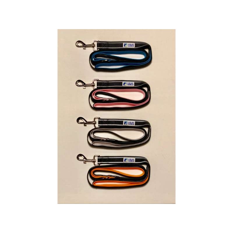 Another problem solved by the Headlight Harness Family! Do you find yourself constantly rolling your leash up around your arm to keep your dog close by? Not anymore! With our highly reflective, double handled leashes, simply use the lower handle to keep your dog at your side. Available with handles in Orange, Blue, Grey, Pink or Purple. All of our leashes are 6 feet in length, have padded foam handles for added comfort, and highly reflective stitching to keep your walks comfortable and safe in any conditions! Thank you for shopping at Victorypetsupply.com