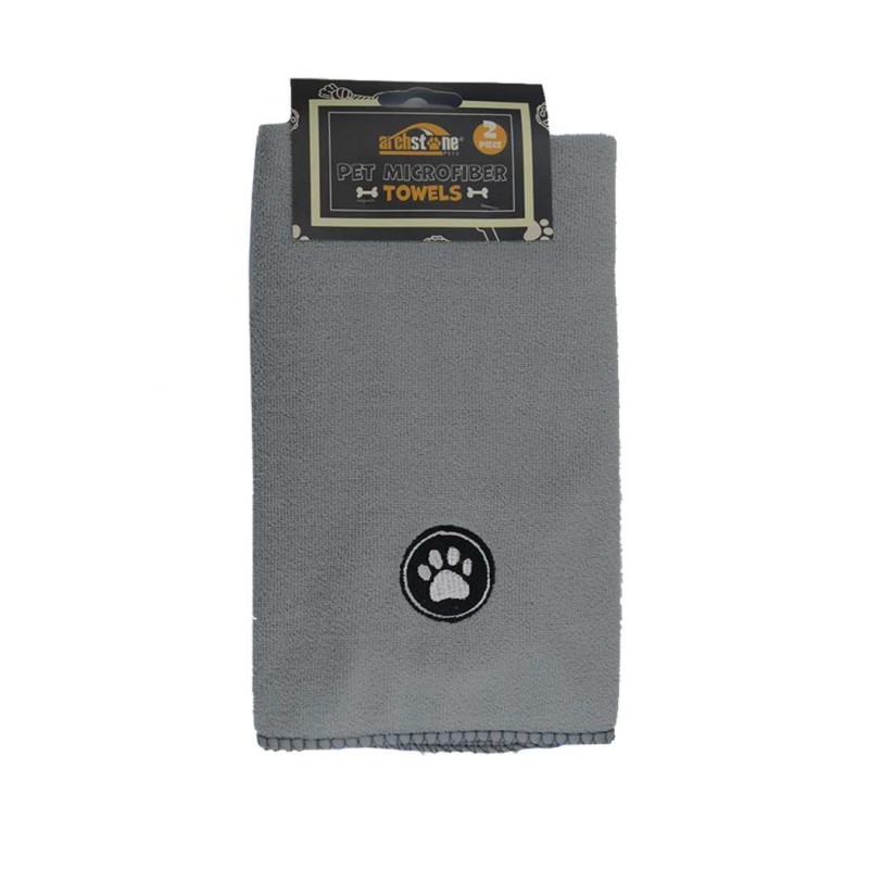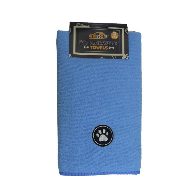 Our 2 pc Microfiber Towel Set is perfect for all your pet messes. Machine-washable, our towel set is perfect for cleaning up those dirty paws, leftover water-bowl splashes, and more! Includes 1 blue and 1 gray towel.