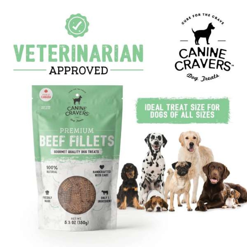 Our protein-rich beef fillets are made with just one ingredient. Our premium beef fillet treats are grown and harvested in Canada and America while being air-dried, handcrafted, and packaged in Ontario, Canada. So you can rely on premium quality.