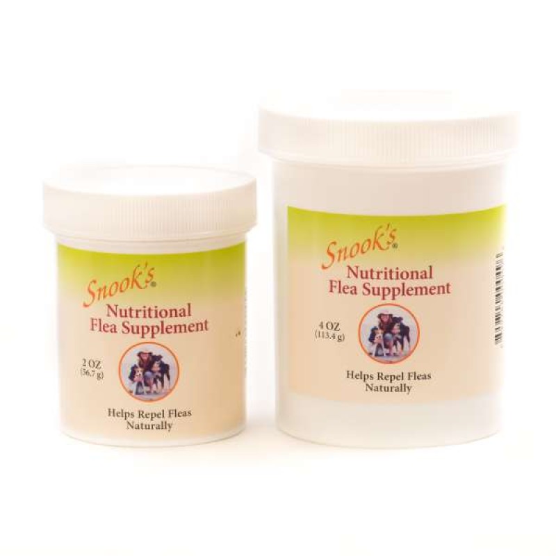 Snook's Nutritional Flea Supplement - A blend of Organic Rose Hips, Kelp, Garlic and Brewers Yeast. Helps make dogs blood intolerable to fleas and has many nutritional benefits for your pet. Available in 2oz and 4oz sizes.